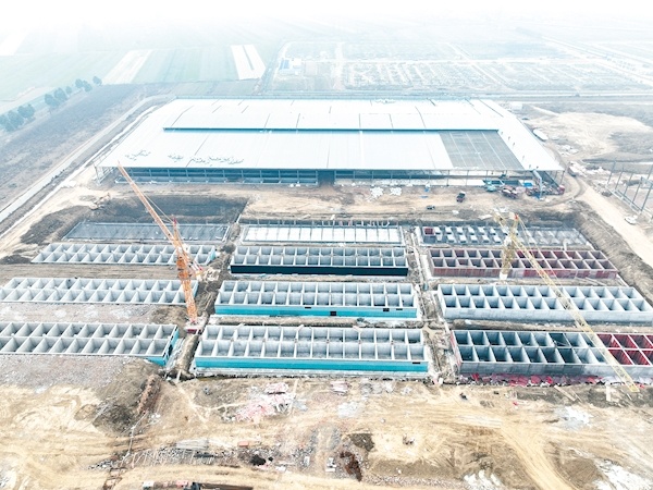 天门现代农业产业园项目建设现场。从空中俯瞰,数百个方格状的储存池颇为壮观。 (通讯员 程杨 摄)