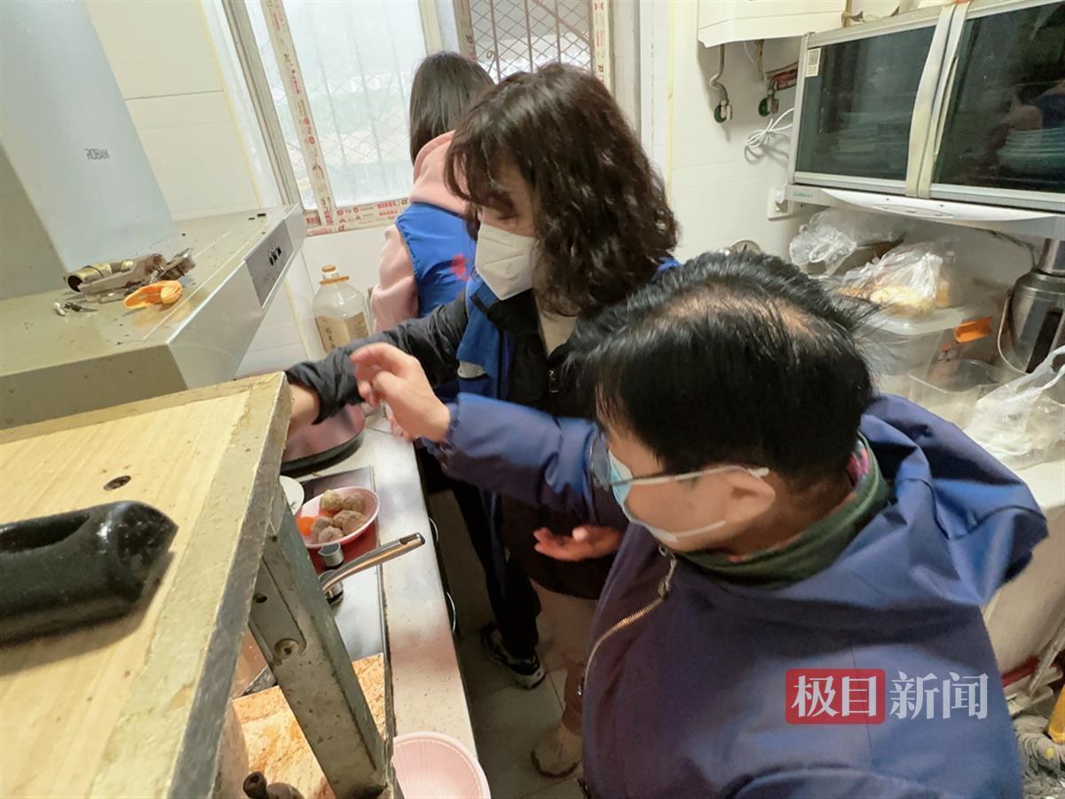 社区党委书记肖丽娜正在为刘婆婆做团年饭
