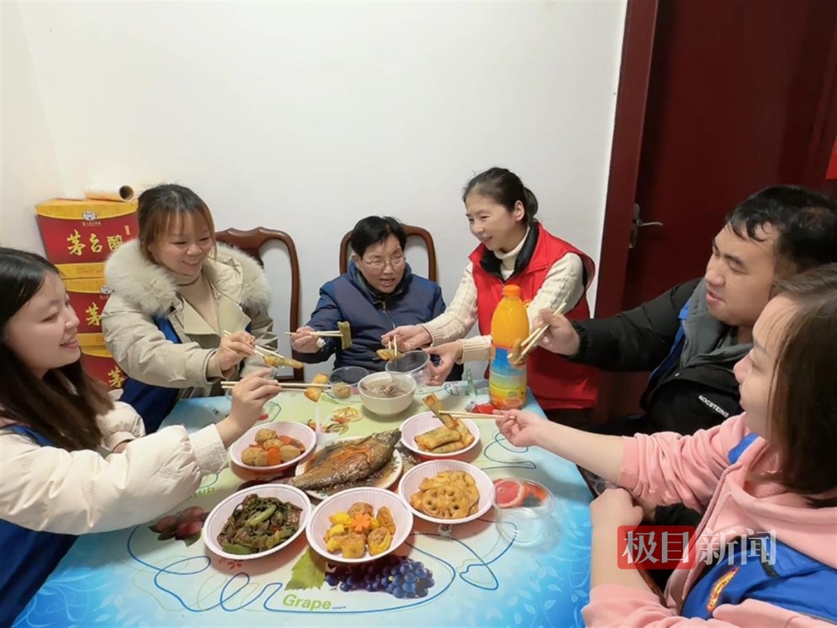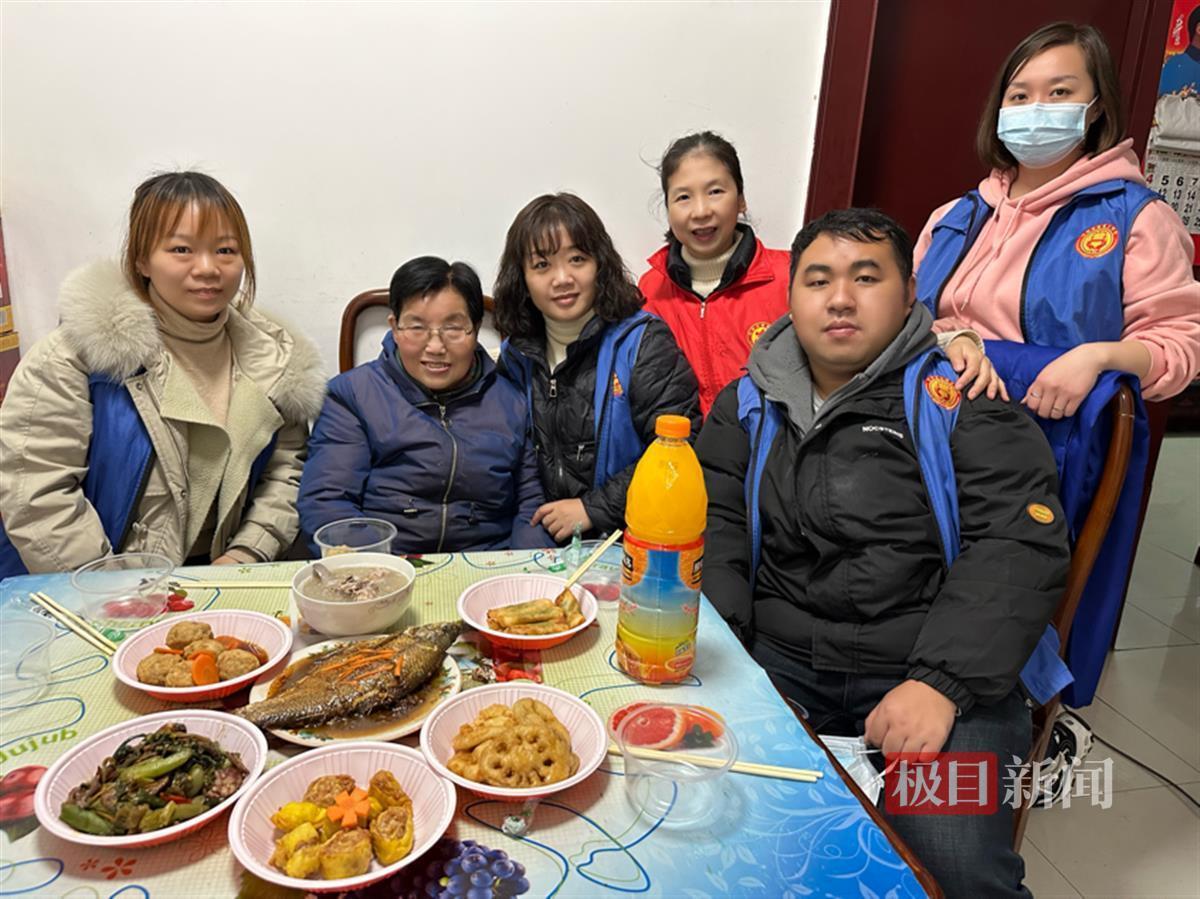 社区工作人员陪刘婆婆一起吃“团年饭”