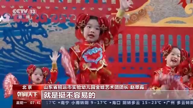 山东省招远市实验幼儿园金娃艺术团团长 赵翠霞:踩着高跷你还要抖着扇子,还要扭出那个味道来,不能生扭硬扭,还要带上表情,还要带劲一点,就是挺不容易的。但是能坚持下来的孩子都是最棒的孩子。