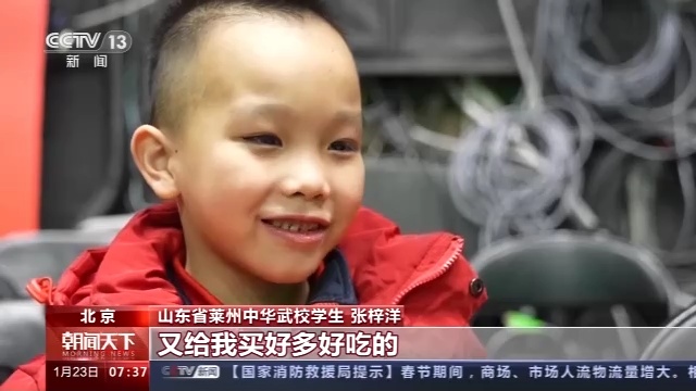 山东省莱州中华武校学生 张梓洋:爸爸妈妈可以在电视上看见我,又给我买好多好吃的。
