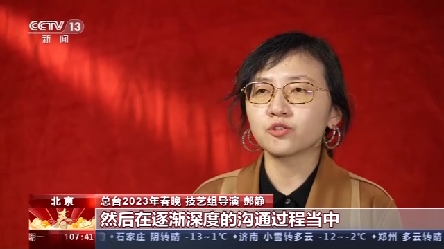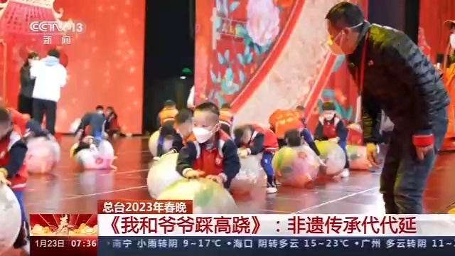 总台2023年春晚技艺组导演 郝静:当时我们就觉得一群小朋友踩高跷特别有意思,其实没多想,然后在逐渐深度沟通的过程当中,我们就觉得其实它是可以作为一个展示非遗元素的一个节目,想表达的是孩子们对于非遗的传承。
