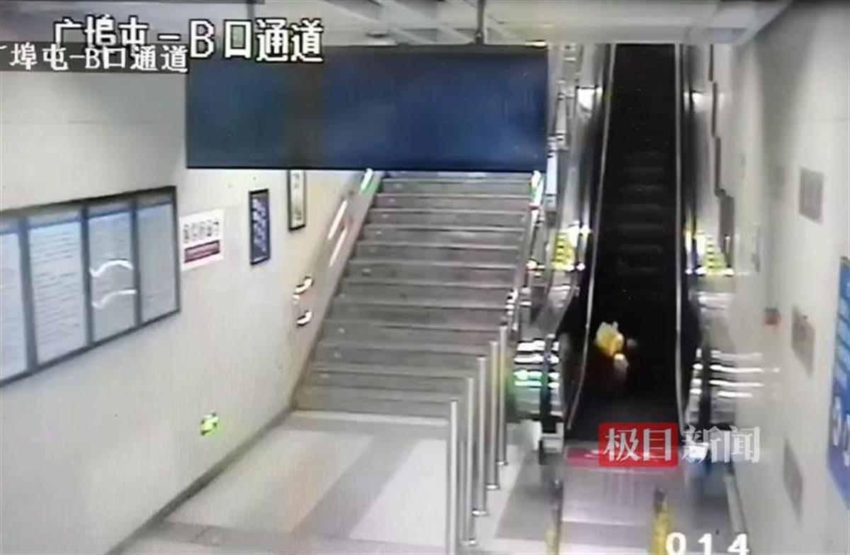 当天上午9时24分,在武汉地铁2号线广埠屯站B出入口,一位爹爹乘坐手扶电梯出站时,刚走上电梯就因站立不稳而摔倒。当时,扶梯还在运行,爹爹仰面躺在扶梯上,随着扶梯一起上行,情况十分危急。路过的乘客看到后急忙呼救。