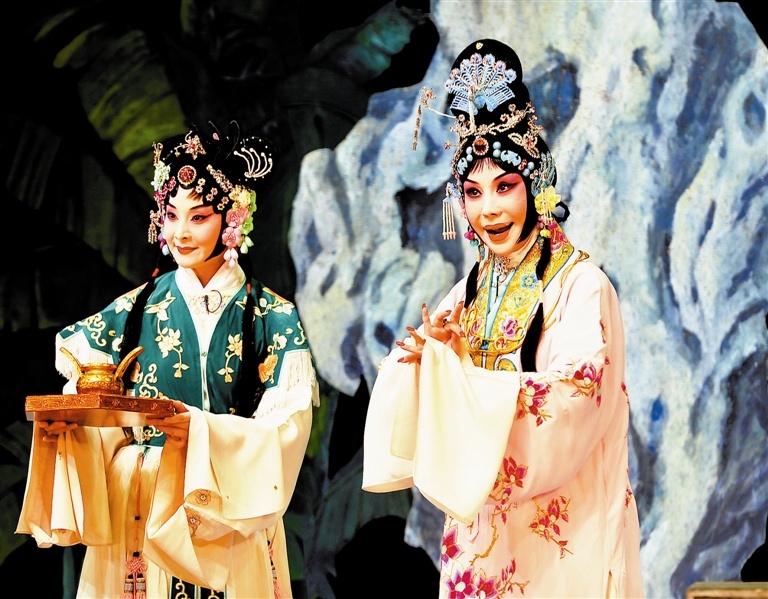上图 赵秀君(右)、王竹馨在剧中分别扮演崔莺莺和红娘