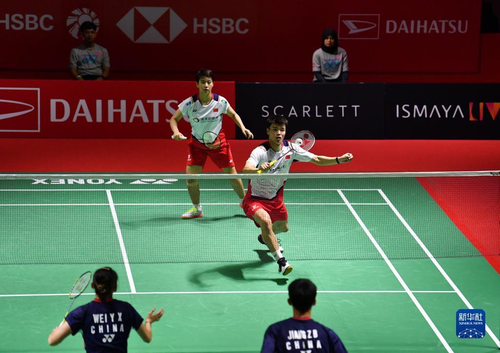 1月27日,王懿律(上右)/杜玥(上左)在比赛中。新华社记者 徐钦 摄