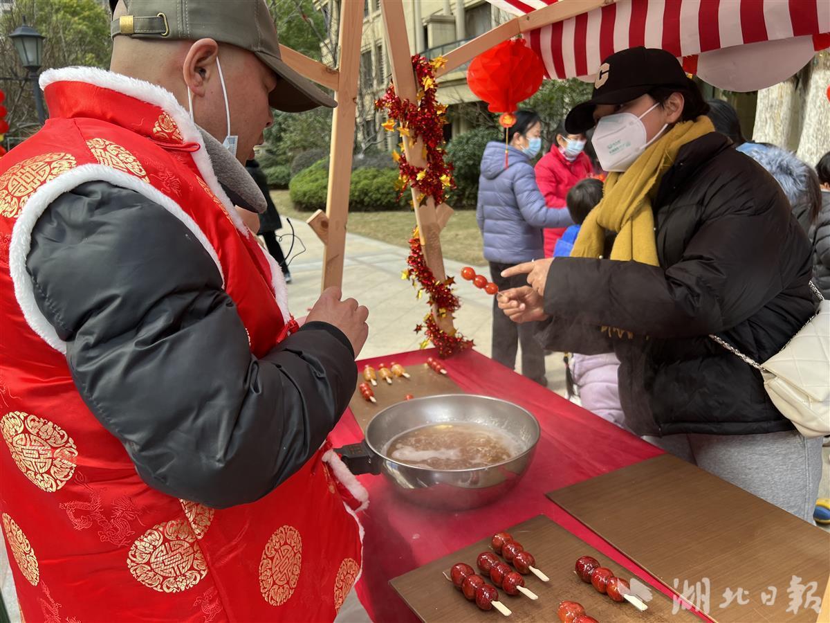 非遗展示区同样“年味十足”,画糖画、冰糖葫芦、棉花糖等武汉名小吃竞相争艳,大家边吃边逛,感受到久违的年味儿回来了,伴随着冬日里温暖的阳光,满怀喜悦。