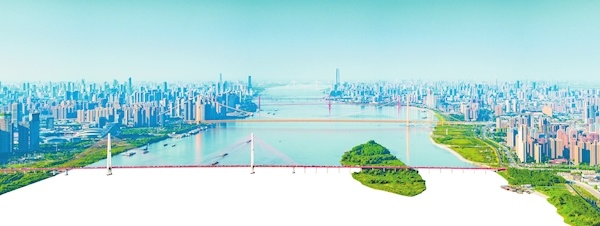 长江武汉段水清岸美,一座座大桥尽收眼底。长江经济带发展、促进中部地区崛起等国家战略叠加之下,武汉正加快建设国家中心城市。 (湖北日报全媒记者 柯皓 摄)
