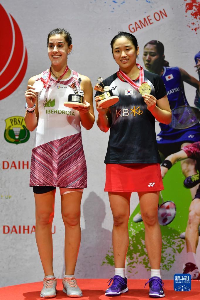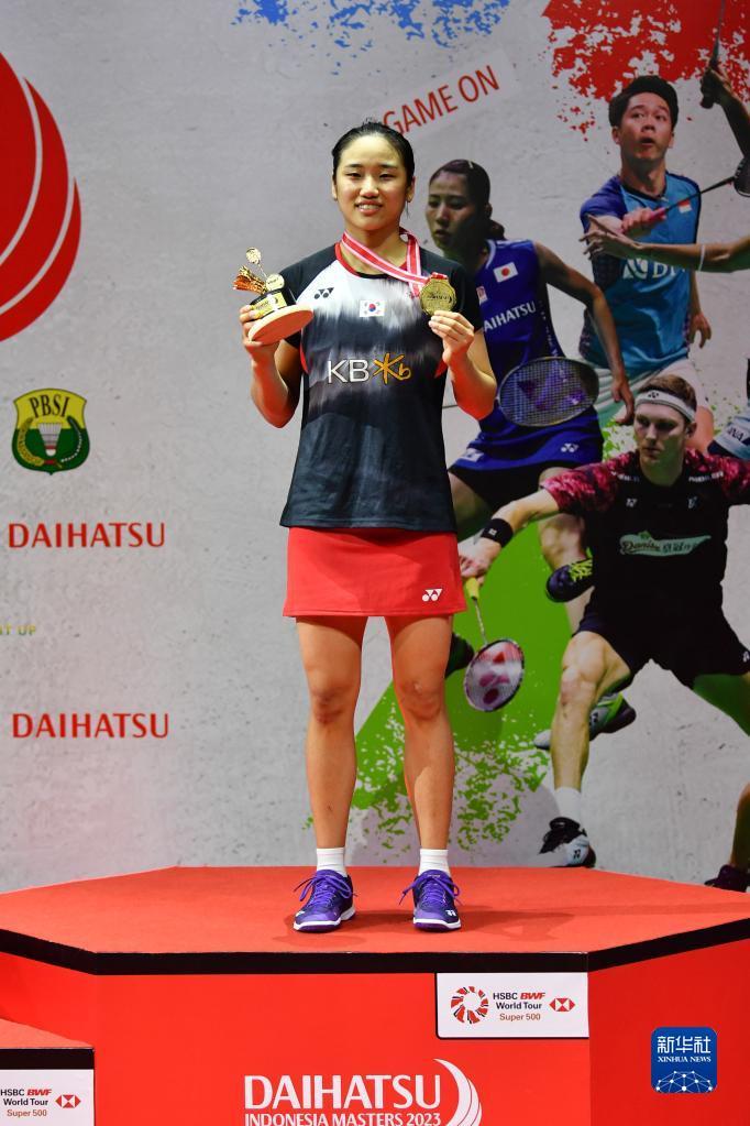 当日,在雅加达举行的2023年印尼羽毛球大师赛女单决赛中,韩国选手安洗莹以2比1战胜西班牙选手马林,夺得冠军。