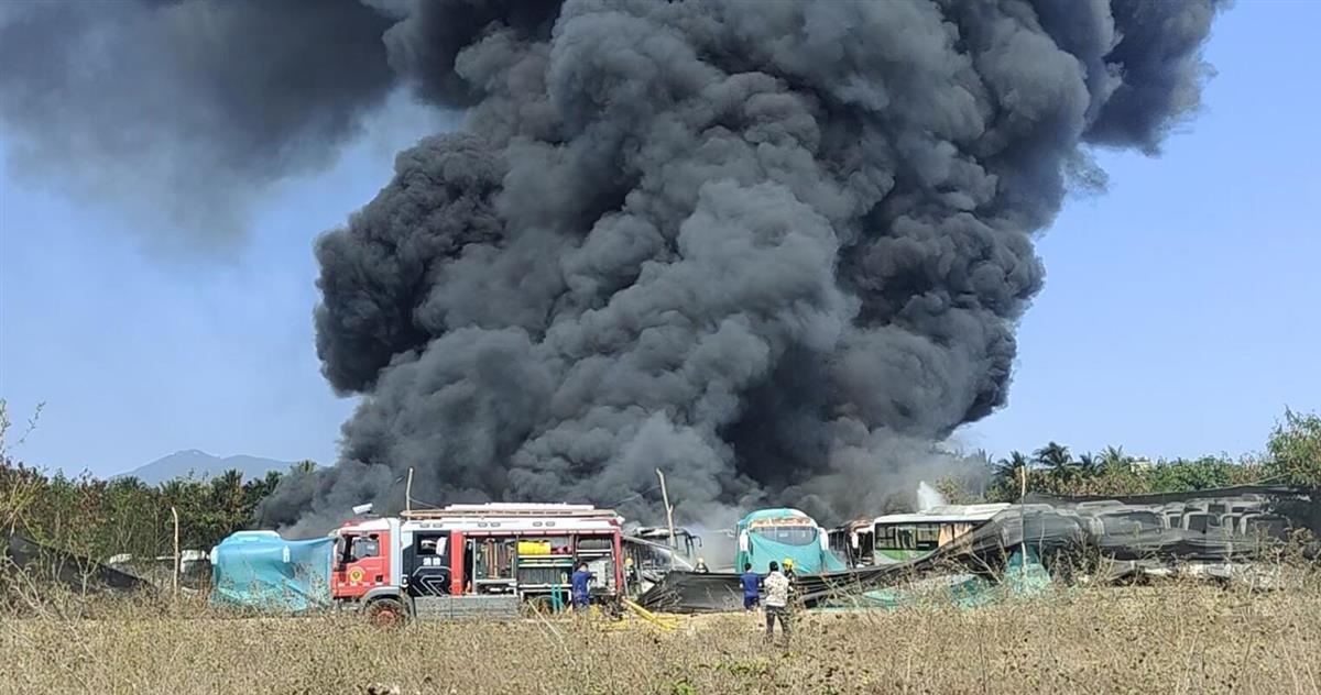30日中午,多名网友发布视频称,三亚凤凰国际机场附近发生火灾,现场浓烟滚滚。现场目击者马先生告诉极目新闻记者,起火的地方是一片空地,停了很多大客车。13时10分许,他刚好路过火灾现场,刚开始过火面积不大,但火势逐渐起来,一点点将车都烧了,还发出连续的爆炸声。马先生称,他距事发场地有四五十米,不敢靠太近,有一辆消防车正在离他不远处灭火。