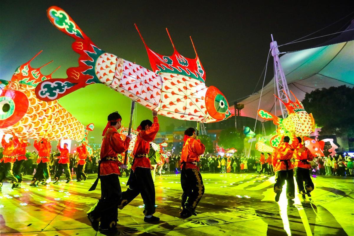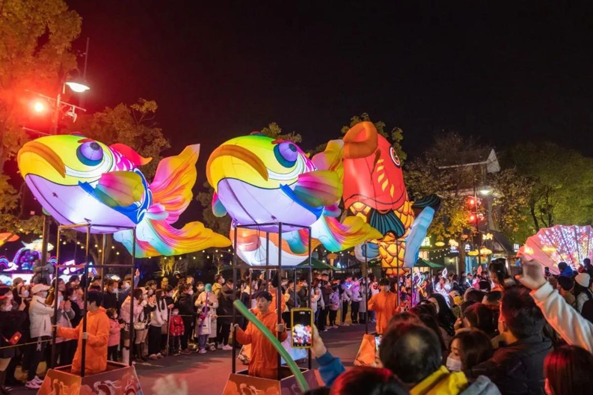 正月十五上演最后一场光YU新春无人机秀,众多科技感十足的空中祝福语为各方游客送上开年好兆头,千只无人机迎风而起辞岁迎新,以天为幕,以城为景,为游客奉上一场精妙绝伦的视觉盛宴,欢乐开启兔年新春。东湖灯会持续开放,35万方自贡花灯亮点十足,锦鲤花灯打造沉浸式国风,美轮美奂尽情满足游客期待。跳楼机、大摆锤等大型游乐项目日夜持续开放,阖家游园乐开怀。国潮演艺精彩纷呈,徽州传统“汪满田鱼灯”喜庆红火嬉鱼开年,新春大巡游陪你欢乐闹元宵。