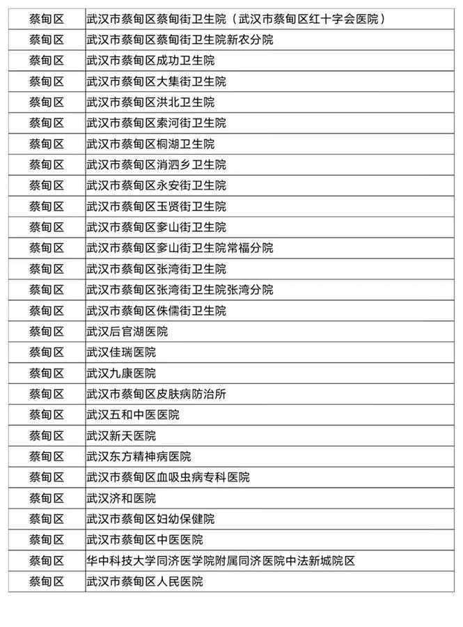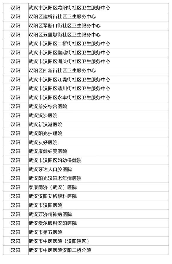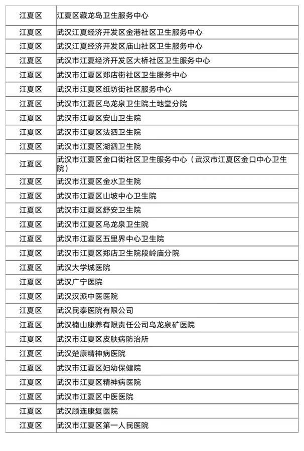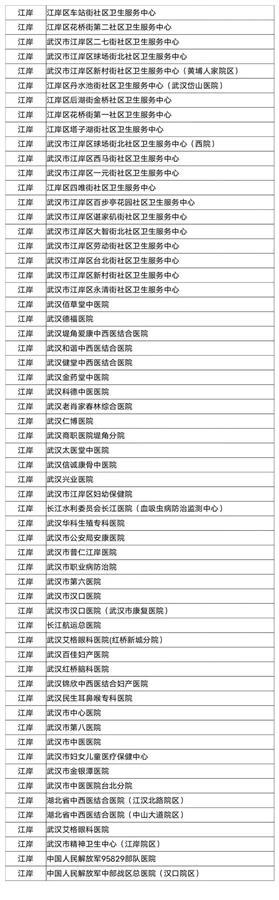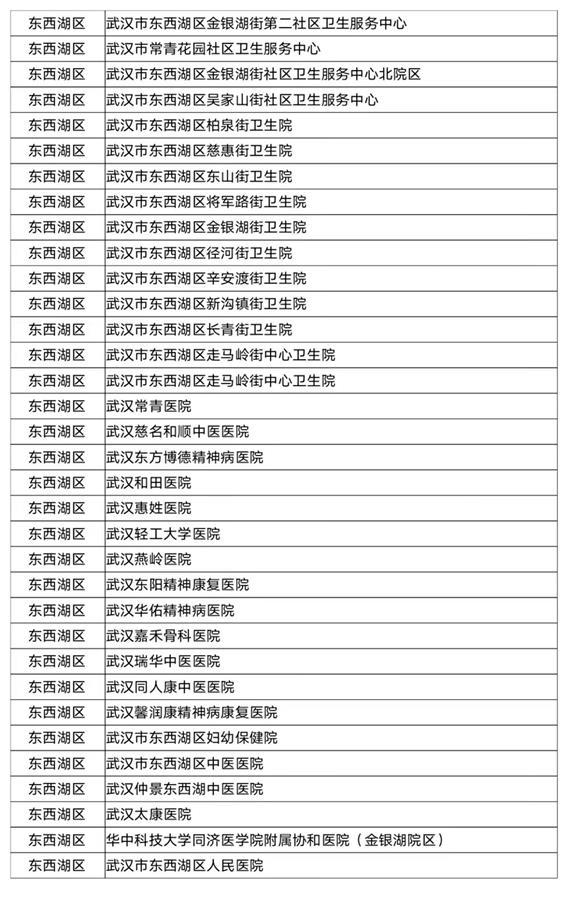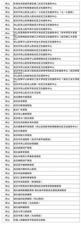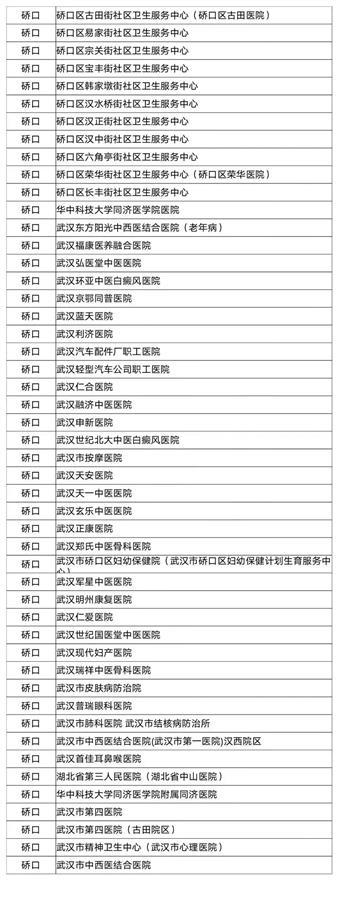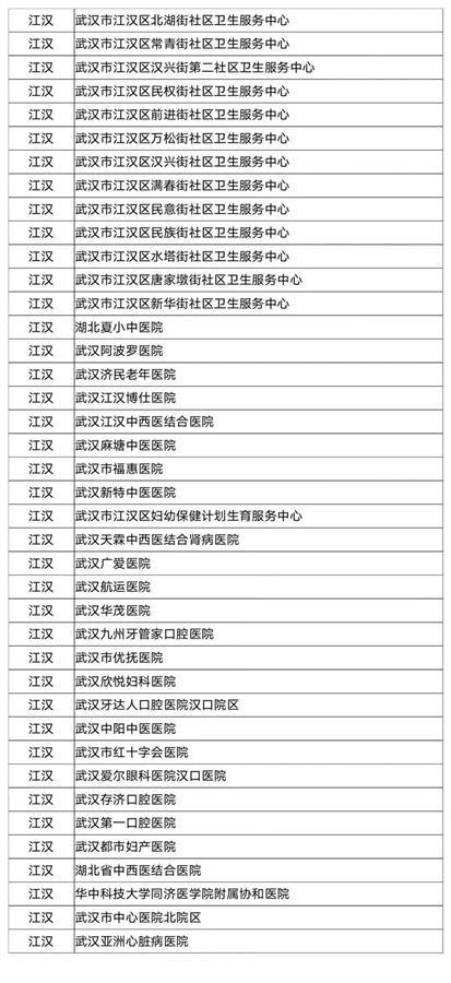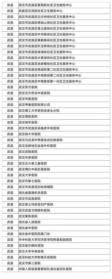 武汉市职工医保门诊统筹定点医疗机构名单