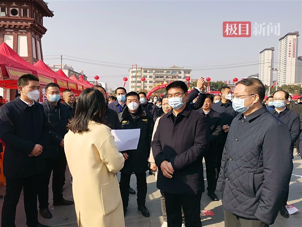襄阳市委常委、枣阳市委书记孟艳清(右二)等与招聘企业交流