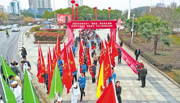 2月1日上午,中国老年人体育协会的开年首场“大戏”——2023年全国老年人“迎新春”持杖健走活动暨2023年湖北省“福寿康宁”老年人持杖健走活动在咸宁市人民广场开幕。站在参加活动的全省500名老年人群中,80岁的郭南山大声说:“雄关漫道从头越。今天我们要挥起臂,迈开腿,‘兔’飞猛进向健康幸福出发!”