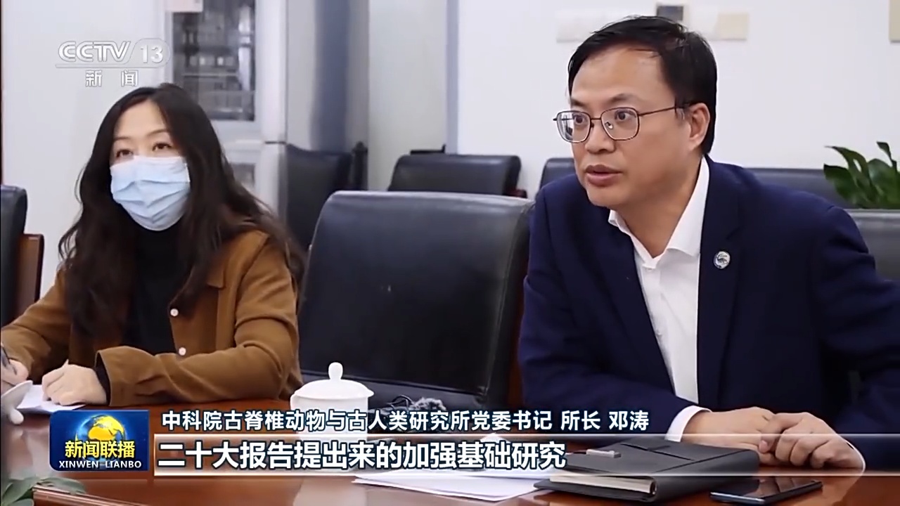 中科院古脊椎动物与古人类研究所党委书记 所长 邓涛:二十大报告提出来的加强基础研究,脊椎动物演化和人类起源就是非常典型的这个方面的研究。