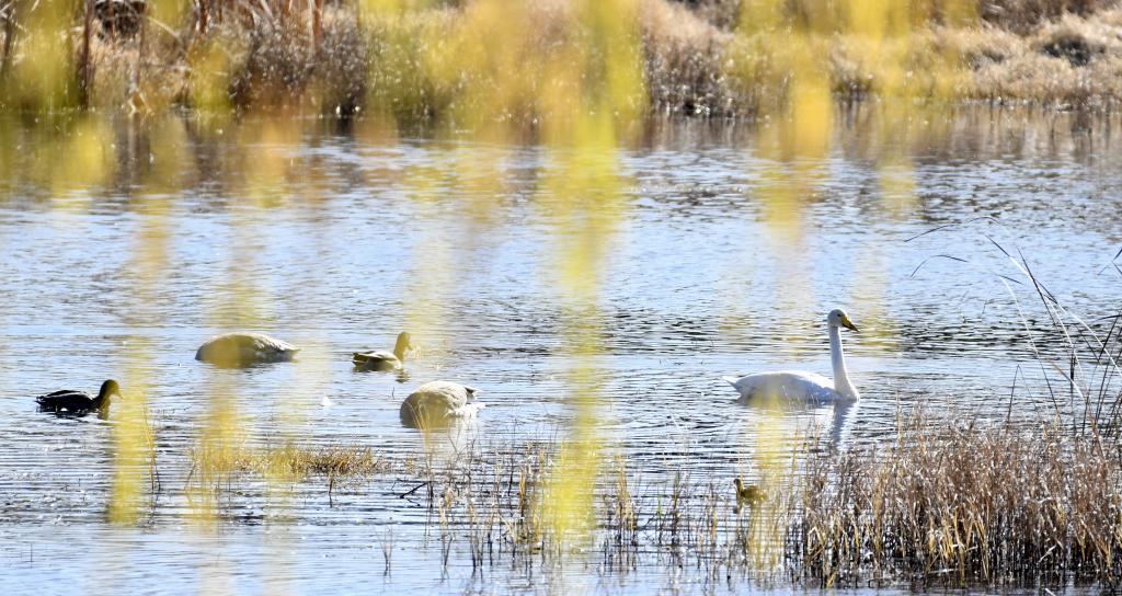 优美的环境吸引了大批水鸟。就在这个冬天,上千只灰鹤在湿地的浅滩处结伴越冬,啾啾鸟鸣让萧瑟的冬日平添灵趣。官厅水库管理处水生态监测分中心主任王秋生介绍,近年来官厅水库库区鸟类数量不断增加,种类愈加丰富,天鹅、灰鹤等大批水鸟飞临驻足。除此之外,还监测到彩鹬、半蹼鹬等北京地区记录较少的鸟类。“八号桥湿地正在成为鸟儿的生态乐园。”王秋生说。