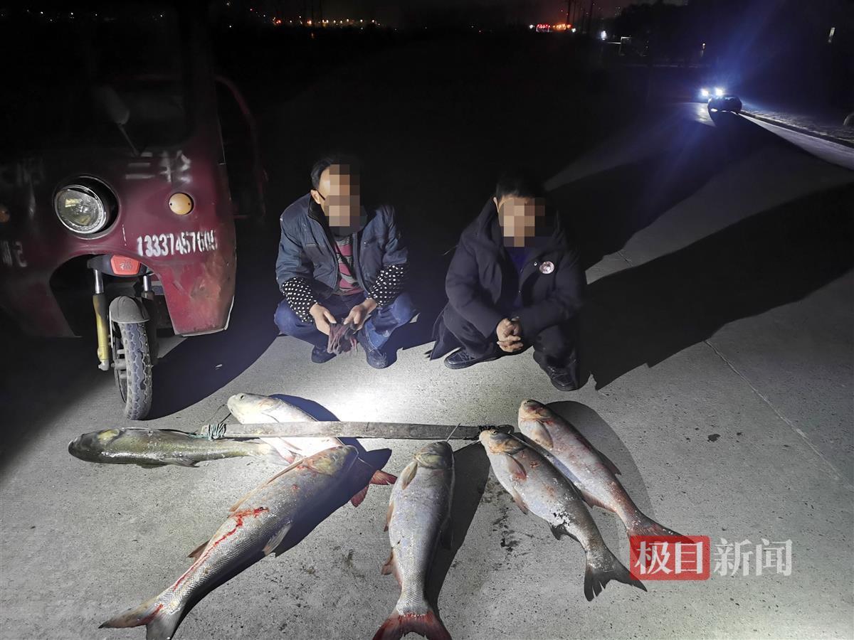 晚10时许,长航公安黄石分局联合武穴市渔政部门开展禁渔巡查,在江堤上将正挑着渔获物的胡某和张某抓获。经渔政部门认定,两人使用的渔具属于禁用工具。