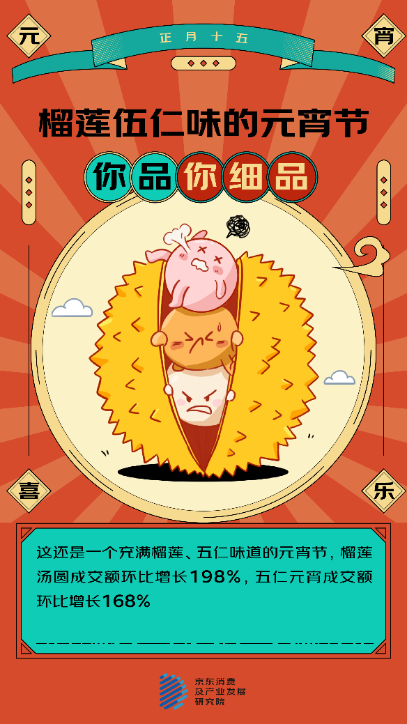 正月十五日元宵节,在这一天吃元宵或汤圆是一种习俗。当下,元宵或汤圆的馅料可荤可素,甜咸风味各异,做法上汤煮、油炸、蒸食等更是“五花八门”。元宵节前期,京东消费及产业发展研究院发布《2023元宵节消费趋势》(以下简称报告),通过对产品、人群、地域等线上消费趋势进行分析,全面解读今年元宵节的消费特色。