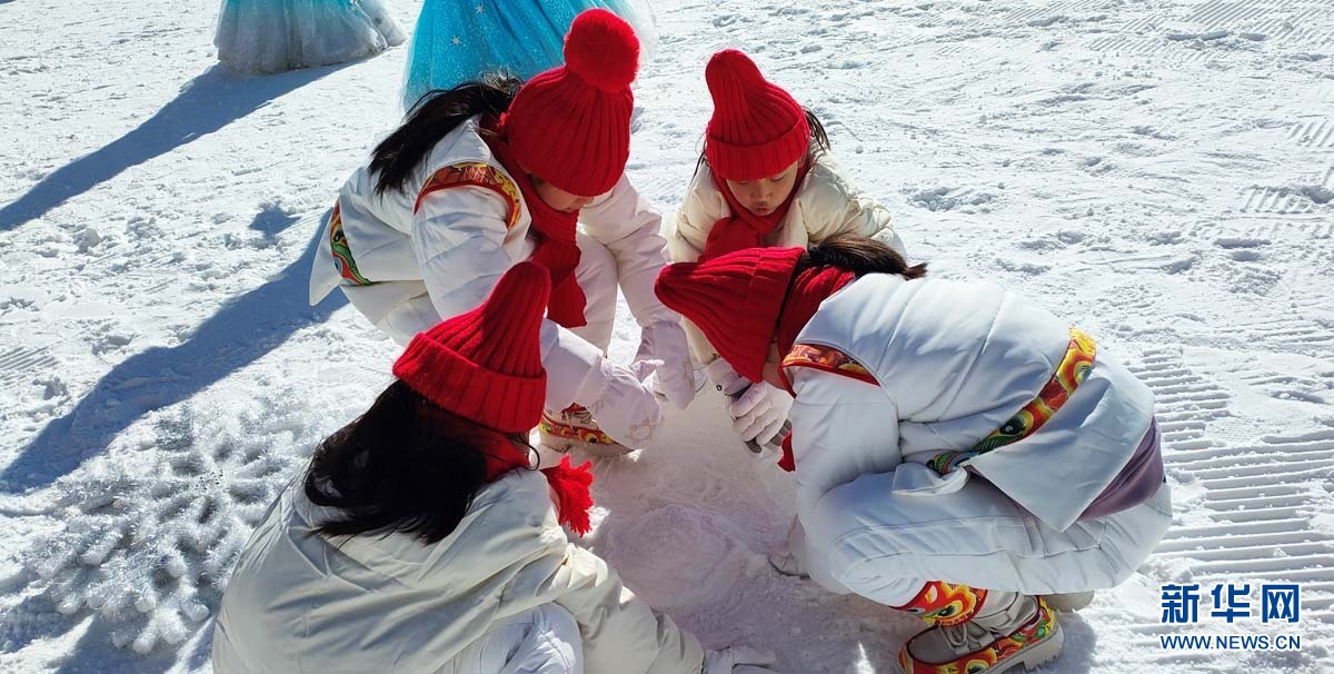 马兰花儿童声合唱团的孩子们在雪地玩耍。阜平县委宣传部供图