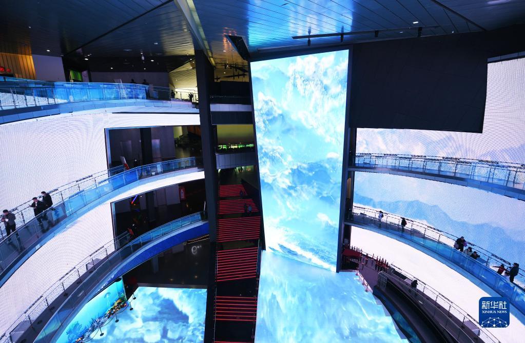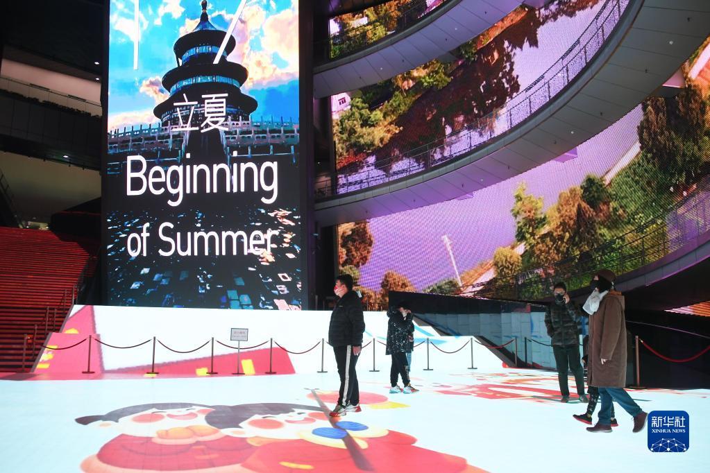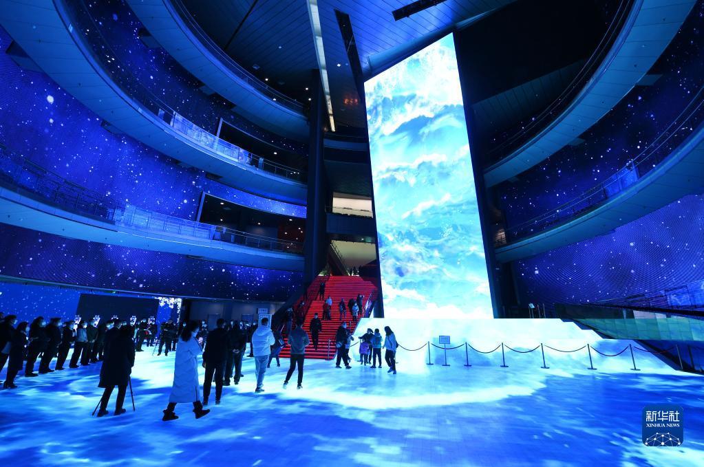 2月4日,观众在中国电影博物馆参观北京2022年冬奥会开幕式大屏幕。新华社记者 任超 摄