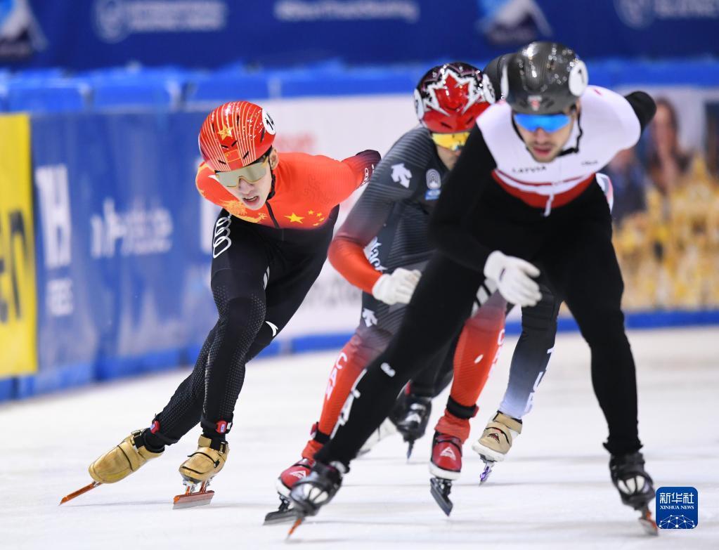 2月4日,中国队选手林孝埈(左一)在男子1000米四分之一决赛中。