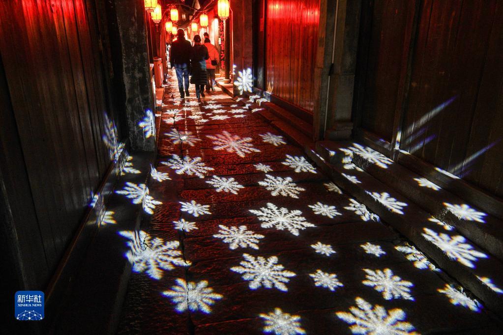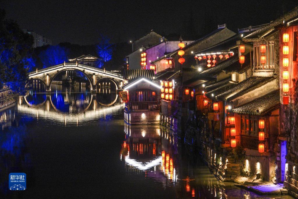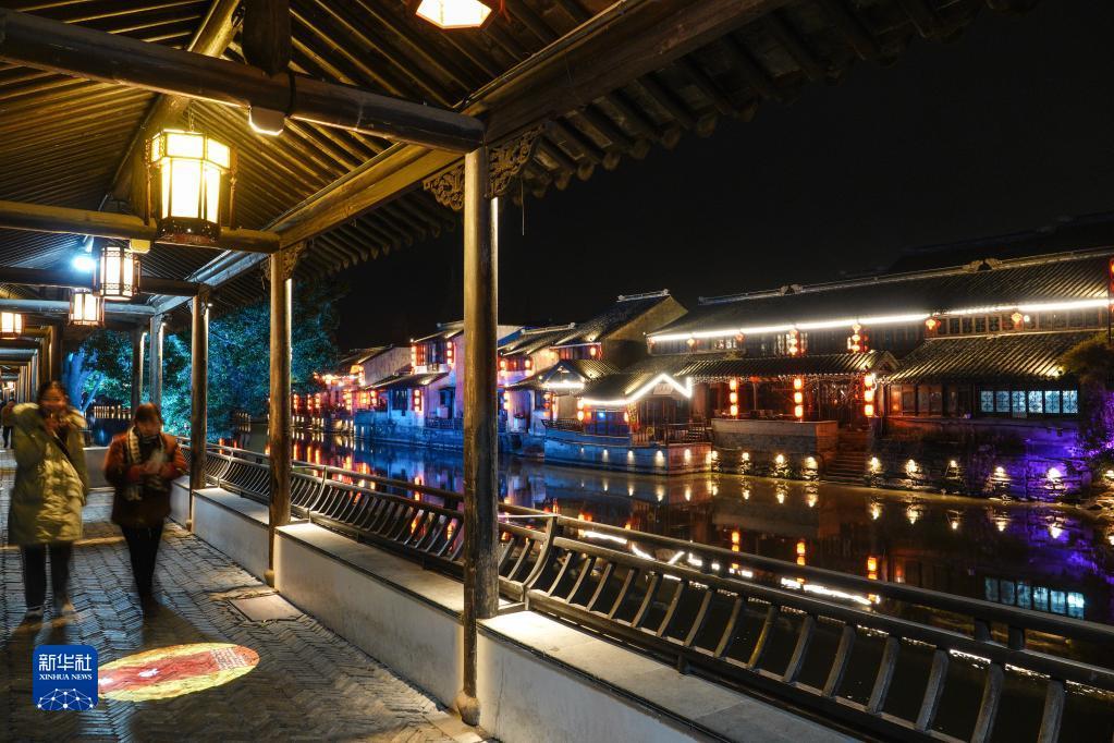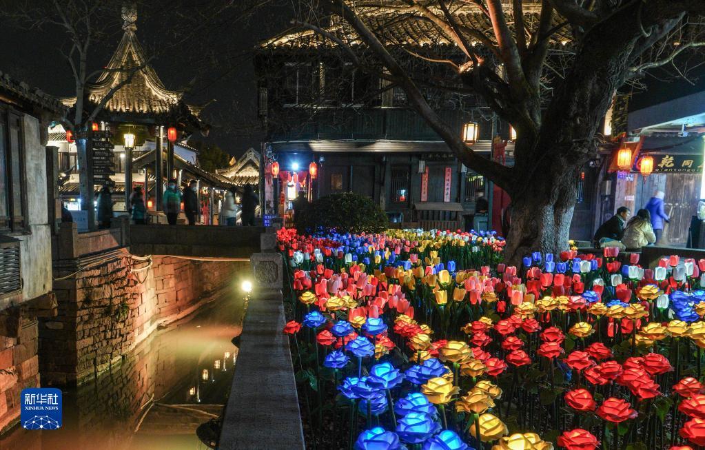 位于江苏省昆山市千灯镇的古镇区将于2月5日元宵节举行“千灯秀”亮灯仪式,具有2500年历史的水乡古镇经过现代声光电技术打造,显得更具魅力。新华社记者杨磊摄