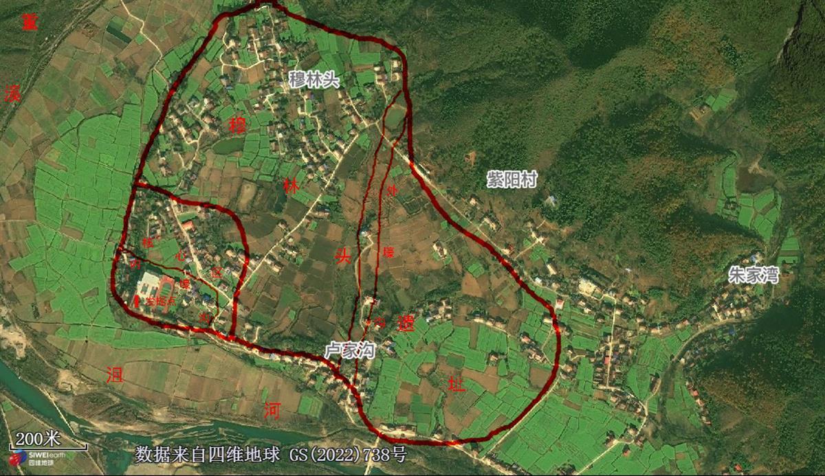 穆林头遗址隶属湖北省襄阳市保康县马良镇紫阳村七组,位于保康县城东南约45公里的重阳盆地西北部的紫阳台地上。遗址大致呈长方形,面积80万平方米。遗址因上世纪70年代烧砖窑取土遭到破坏,现存面积约10万平方米。遗址核心区位于台地西南部,南北长约400米,东西宽约200米,面积约8万平方米。