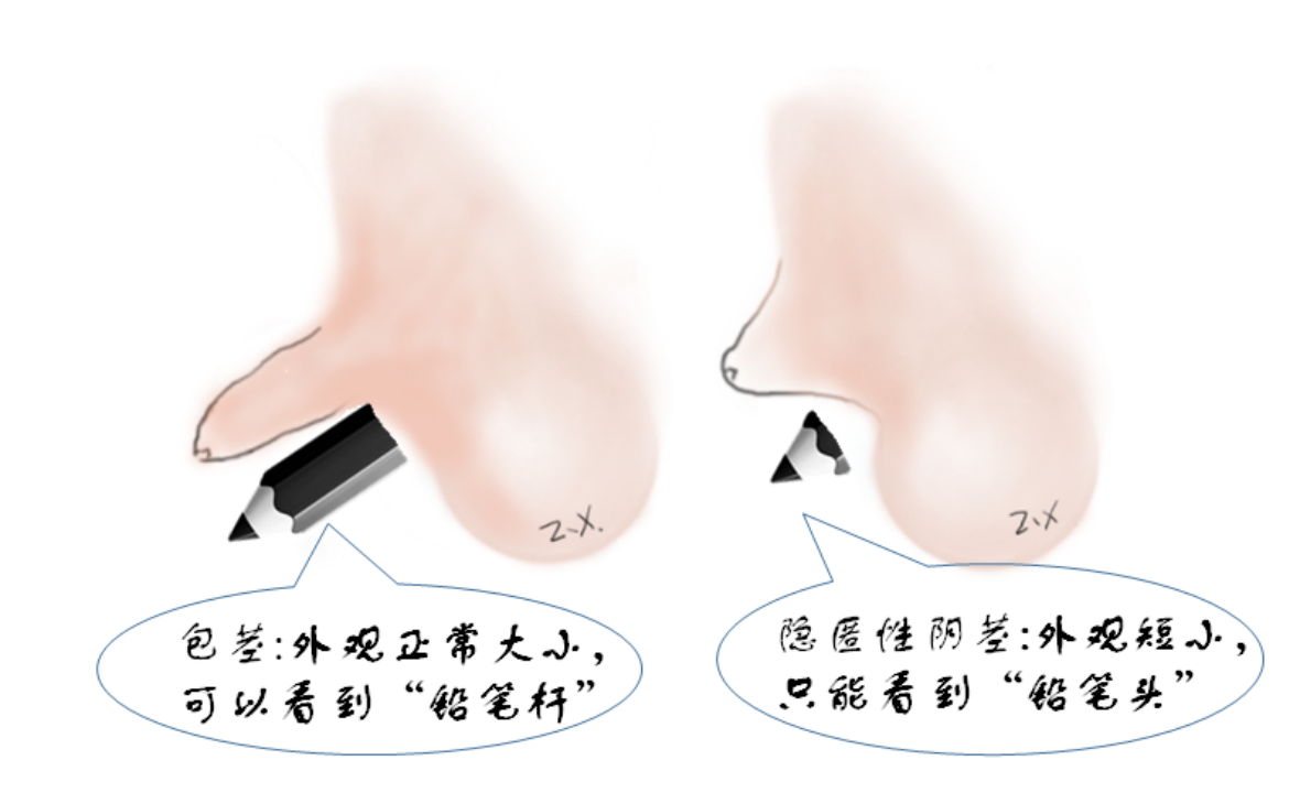 张洪毅介绍,随着生活水平的提高,肥胖超重的儿童越来越多。隐匿性阴茎并不是包茎或是包皮过长。包茎或包皮过长是指包皮太长了,包住了阴茎头;而隐匿性阴茎是指阴茎显露比较差,看上去比较短小。用铅笔来打比方,包茎或包皮过长可以看到“铅笔杆”,而隐匿性阴茎只能看到“铅笔头”。目前,大概有一半的隐匿性阴茎患儿合并肥胖。而过度肥胖是隐匿性阴茎手术的禁忌证。