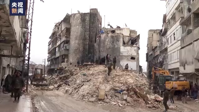 总台报道员 海达尔·加兹韦尼:我所在的沙阿尔社区位于阿勒颇省东部,这个社区曾经是政府和反政府武装的冲突前线,持续了大概五年,所以当地破坏较为严重,基础设施较为薄弱,建筑物也因为遭受轰炸而比较脆弱,所以地震造成的影响也最为严重。在我的身后有两栋建筑在地震中坍塌,尚不清楚有多少人仍被掩埋在废墟下,目前仅解救出约20人,剩余仍然被困。