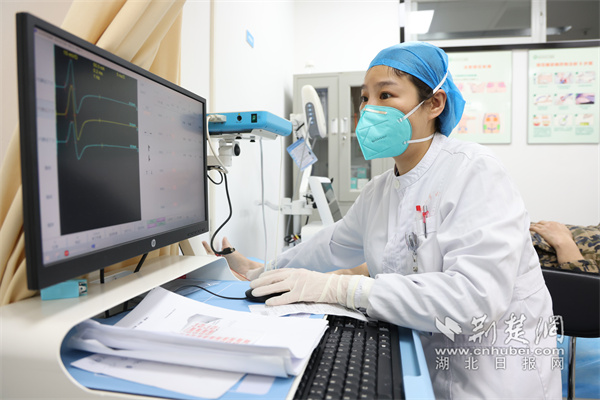 “罗阿姨,请您先躺在床上,不紧张,放松,平卧10分钟后我再跟您测量血压。”在该院后湖院区一站式糖尿病并发症筛查中心内,糖尿病专科护士周婕在指导患者进行下肢血管阻塞的相关检查。