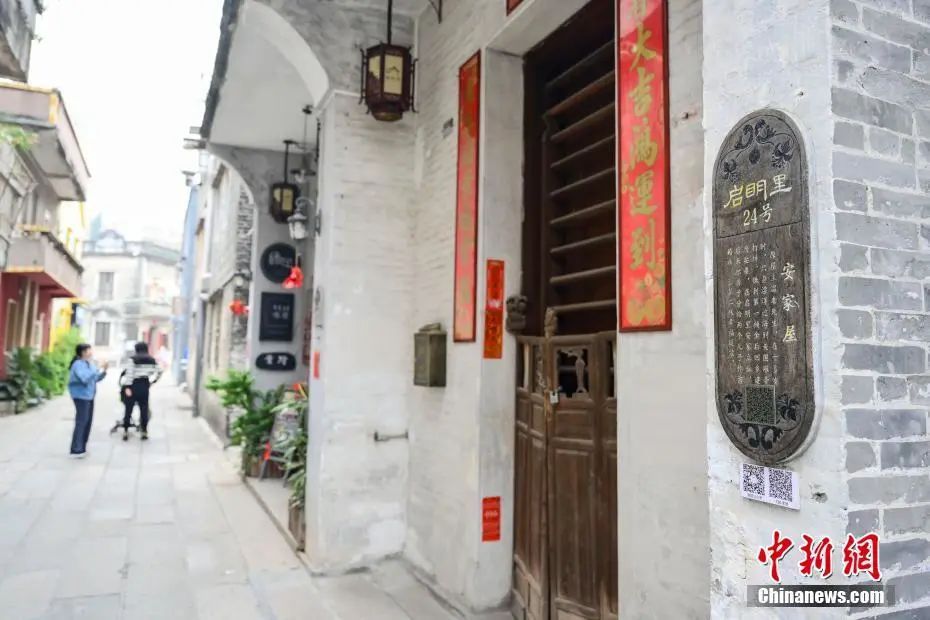 图为启明里华侨屋外观装饰了房屋故事牌,向游客讲述屋主与房屋的故事。中新社记者 陈骥旻 摄