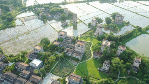 开平自力村碉楼群。中新社记者 何俊杰 摄