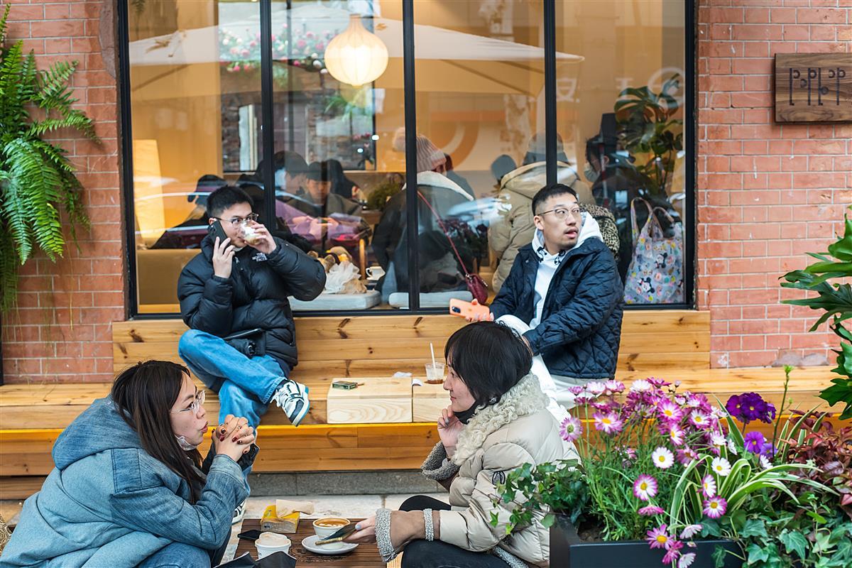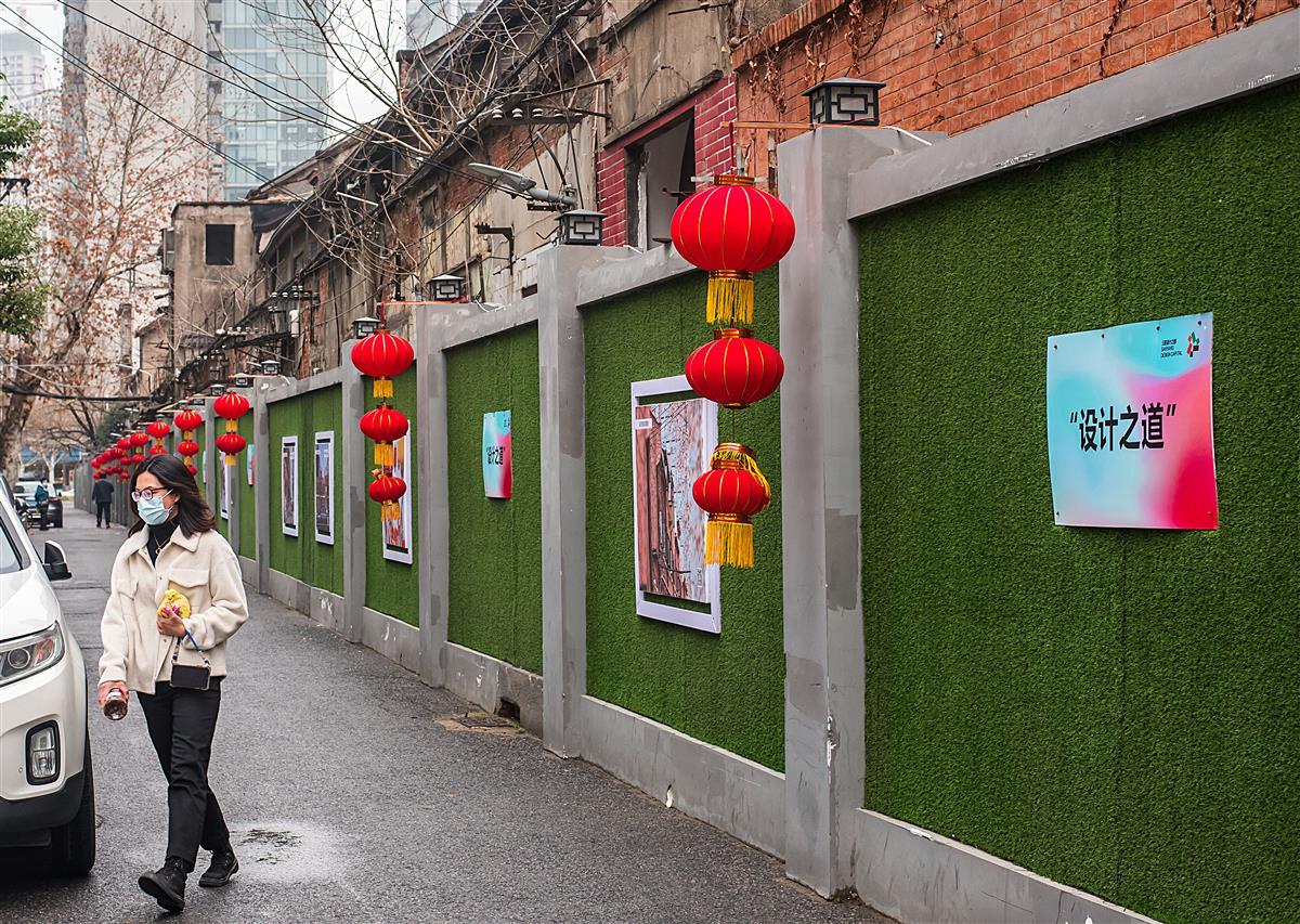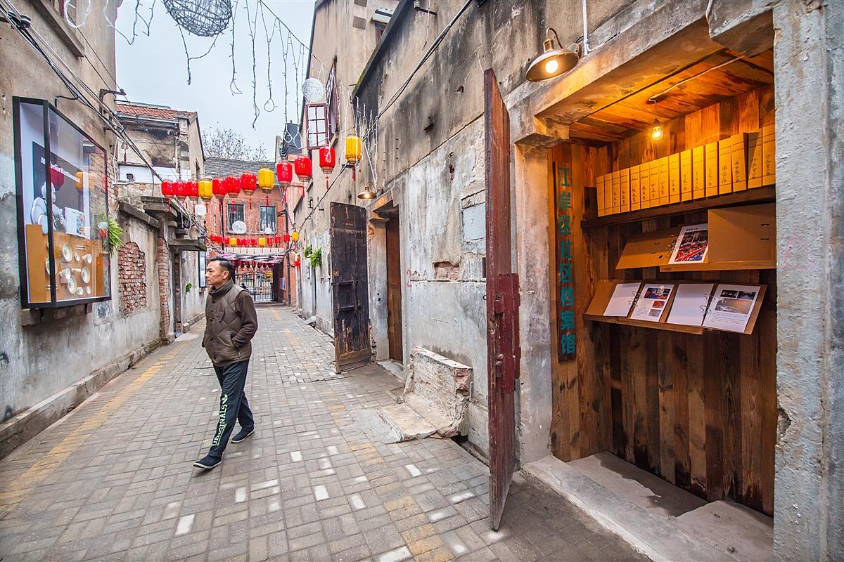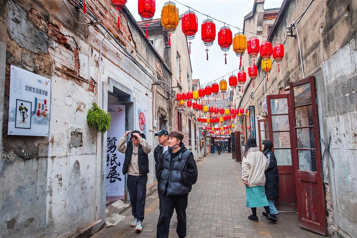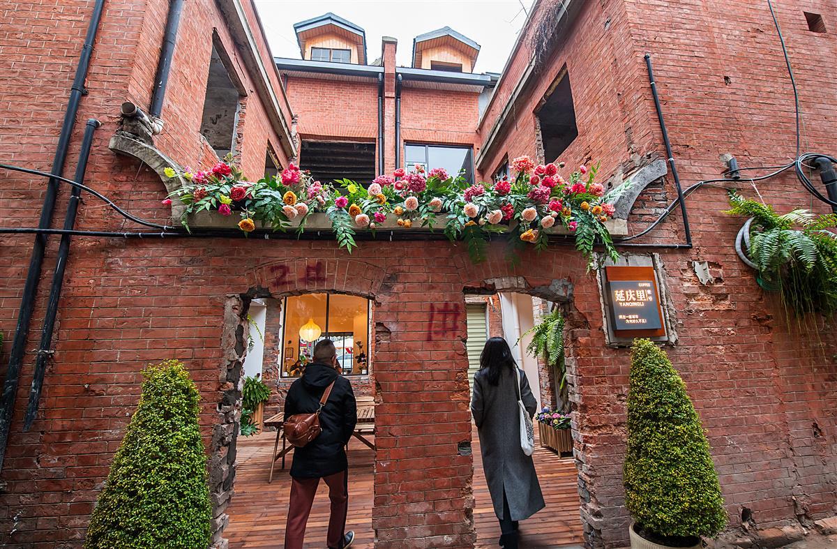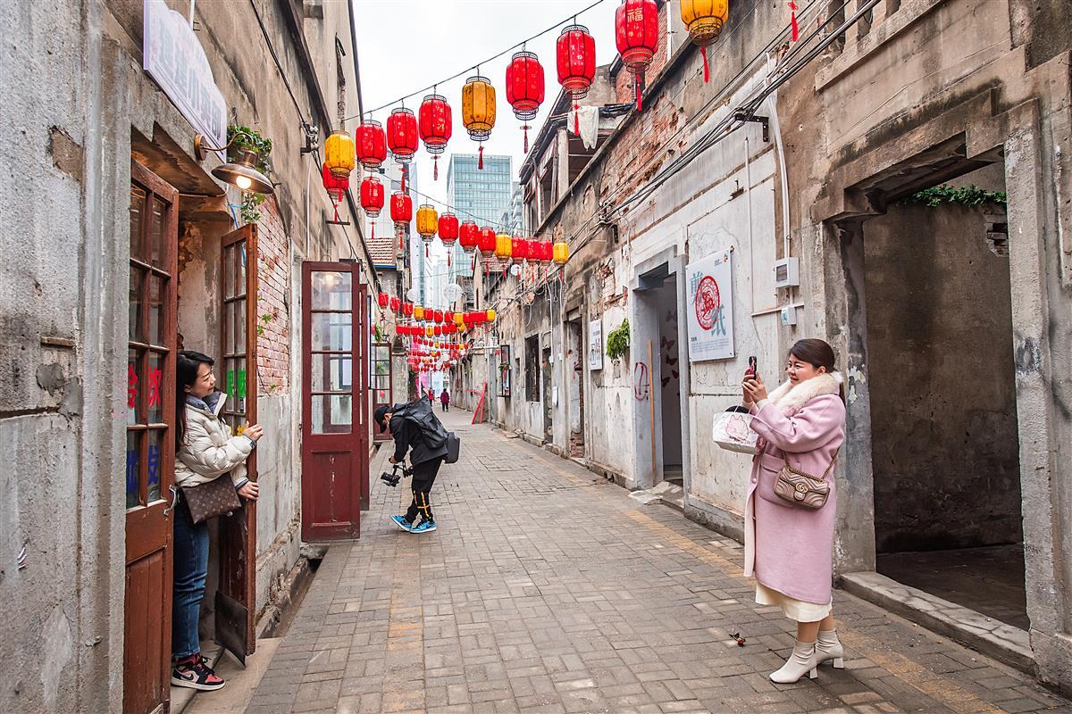 2月8日,武汉汉口延庆里迎来一批又一批的打卡人,游人被由老宅改造而成的展厅或橱窗深深吸引。