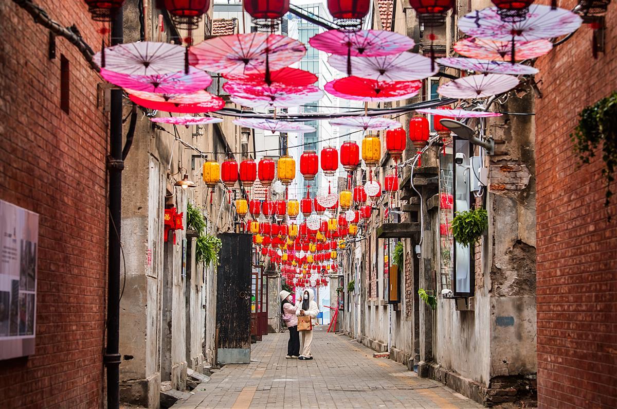 建于20世纪初期的延庆里是老汉口现存较为完整的传统里份之一。2022年,住在延庆里的居民已陆续搬走。2月4日,“三阳设计之都”伴随着元宵节活动正式开街,延庆里是其重要的文化地标之一。那个往日安静沉睡着的老旧小巷已变身“网红地标”,热闹、亮堂起来。