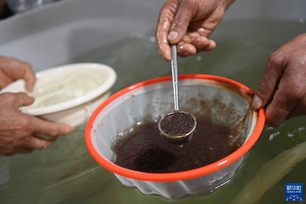 近期,浙江省级罗氏沼虾良种场湖州丰盛湾水产有限公司迎来沼虾苗销售旺季。工人将虾苗围网、捕获、分拣、装箱,及时运输发货到各地的养殖户手中。