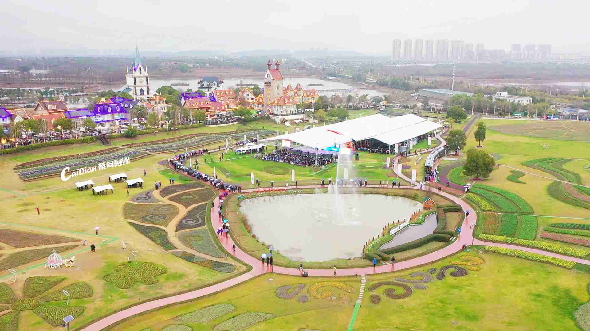 赶大集分为“九城同心”“汉水寻根”“峡江一脉”三个区域,以圆形围合成农家院落场景。三个区域以花间小径串联,烘托出美好乡村的浓厚氛围。