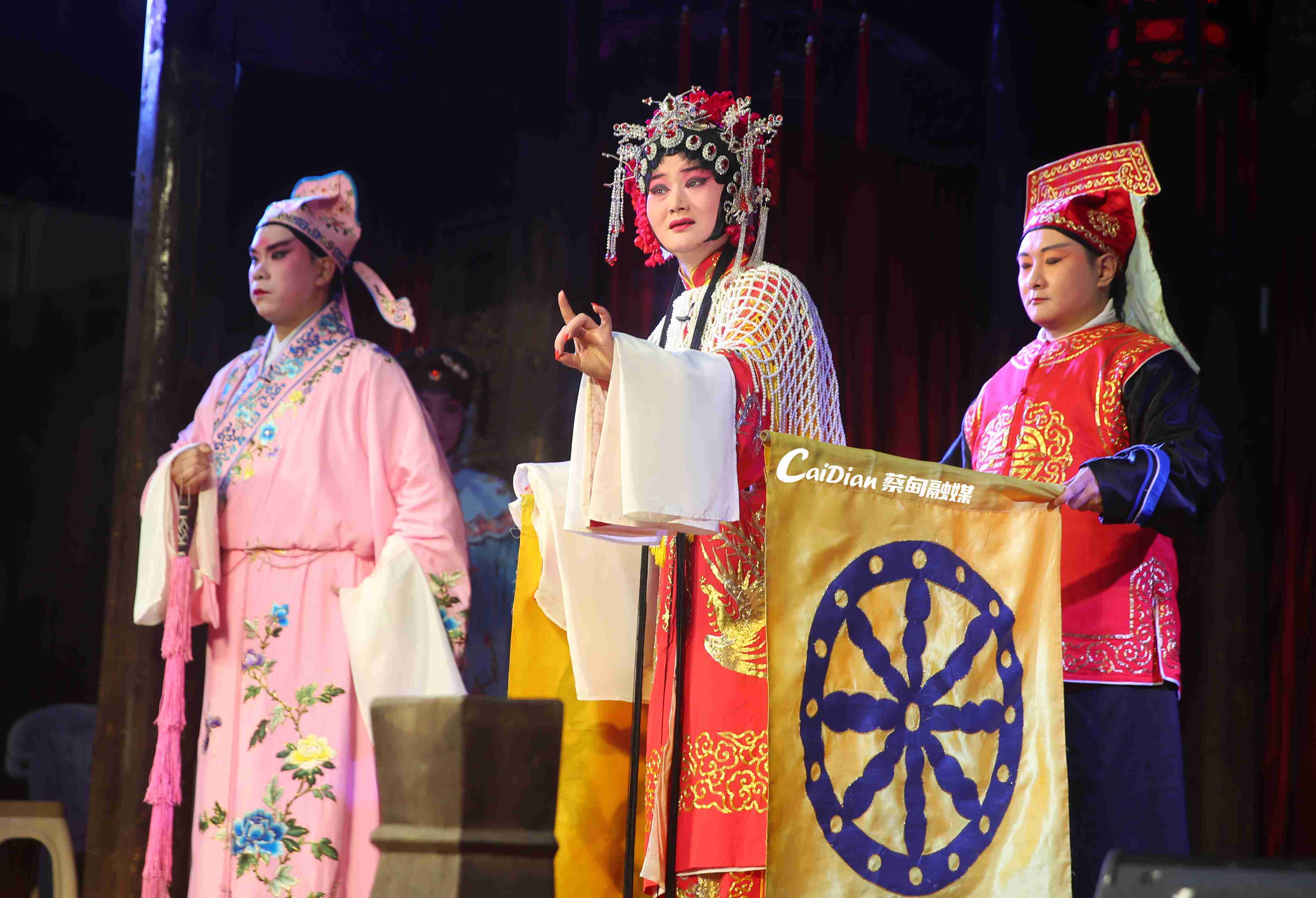 现场还设置了“福气满满”“送你一朵小红花”、 皮影戏表演、情景表演《五虾闹鲇》4个打卡点,让观展更新颖有趣。在打卡互动中,游客们取领福袋,观看花鼓戏、皮影戏和情景表演,感受乡村民俗,领略非遗文化,享受“回村”乐趣。