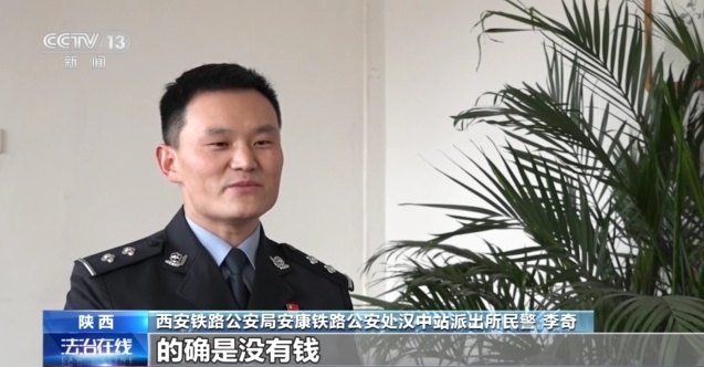 西安铁路公安局安康铁路公安处汉中站派出所民警 李奇:老板把他手机抢过去,看了手机的余额以及身上的现金,的确是没有钱。