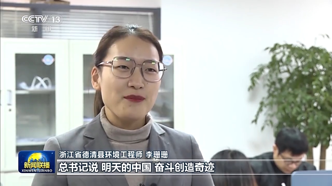 浙江省德清县环境工程师 李珊珊:总书记说,明天的中国,奋斗创造奇迹。实现“双碳”目标,我们青年环境工程师要不断提升本领,我已经学习了环境影响评价等多门课程。我想明天中国的奇迹,就在于我们每一分每一秒脚踏实地奋斗。