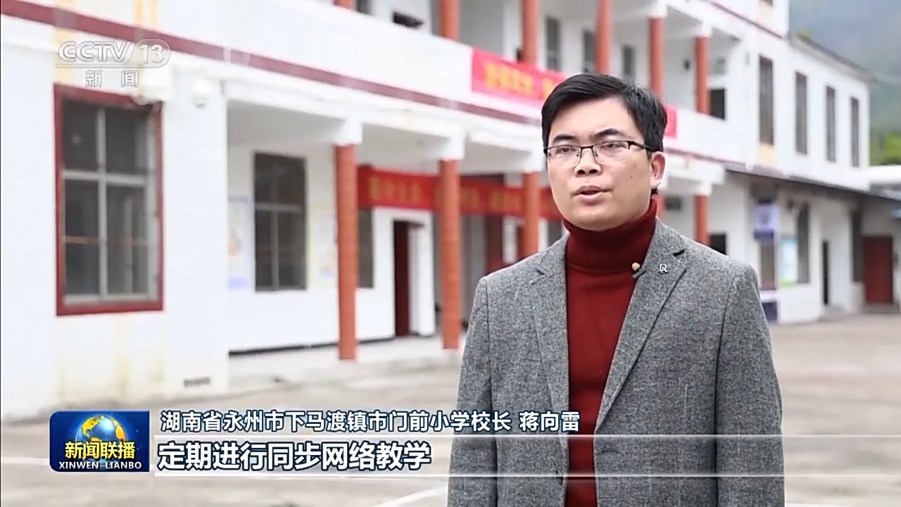 湖南永州下马渡镇市门前小学校长 蒋向雷:定期进行同步网络教学,让孩子们能同时听到音乐、科学这些优秀课程,破解了我们乡村小规模学校“开不齐课、开不好课”的难题,给了我们乡村教育提升的抓手。
