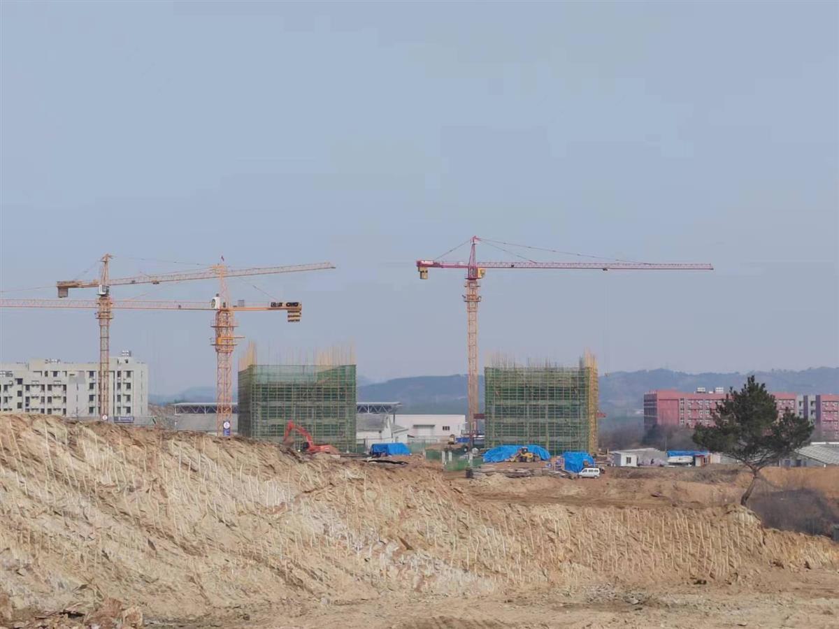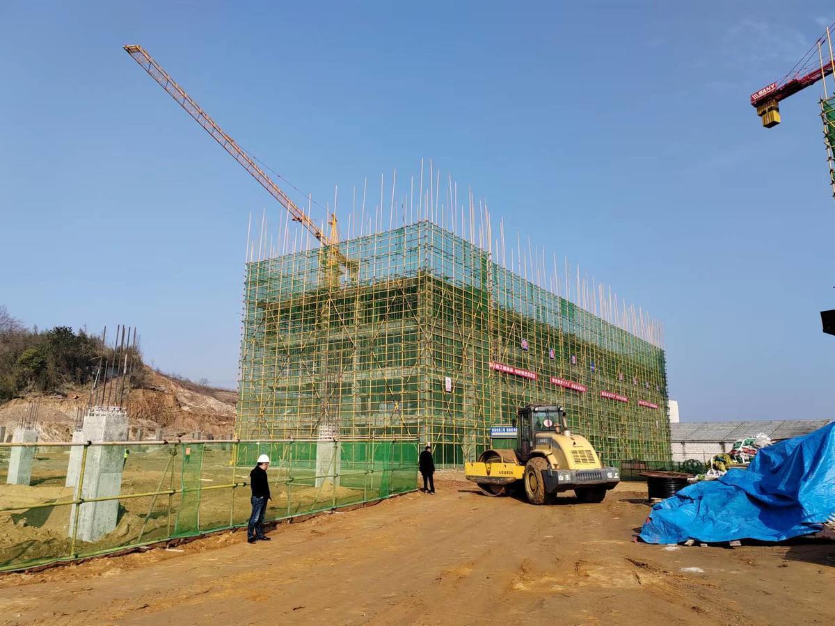2月16日,在位于湖北省大悟高铁试验区的武汉传媒学院大悟校区施工现场,工人们正在紧张忙碌地施工作业,现场一派热火朝天的场景。据了解,这个校区将于今年9月开学迎新,届时将有4200余名师生在该校区学习和生活,革命老区大悟将迎来首所大学。