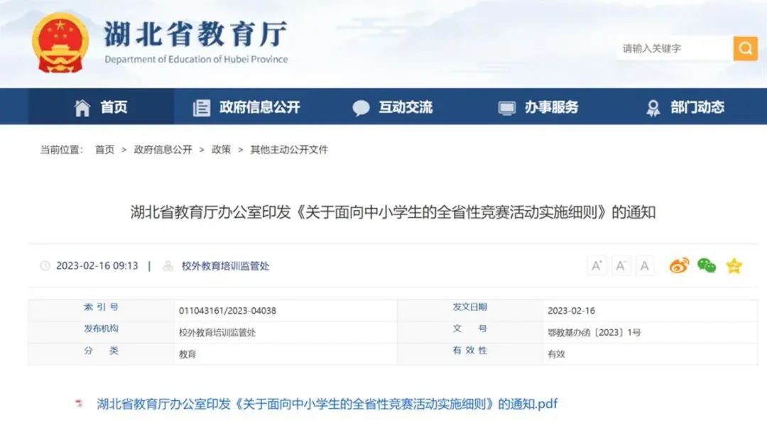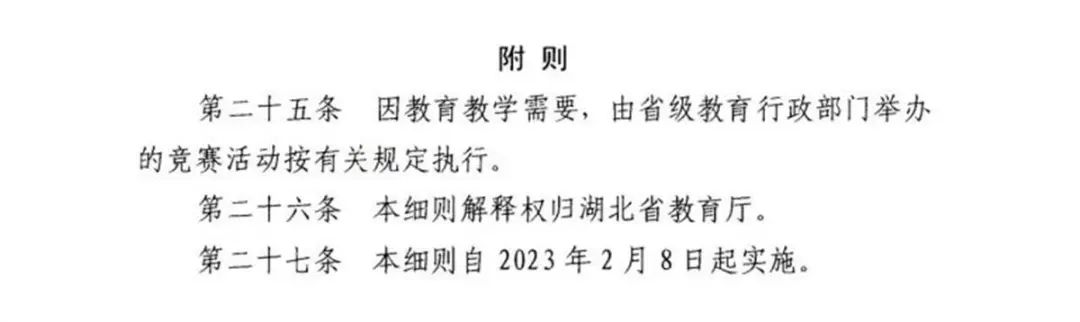 极目新闻记者 肖杨2月16日,极目新闻记者获悉,日前湖北省教育厅印发《关于面向中小学生的全省性竞赛活动实施细则》(以下简称《细则》),强调竞赛活动应坚持公益性原则,竞赛以及竞赛产生的结果,不作为中小学招生入学的依据。