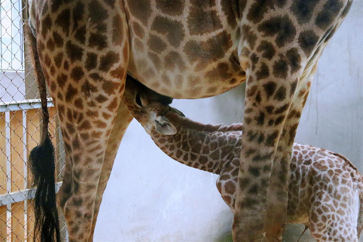 武汉野生动物王国草食班负责人孙春来介绍,长颈鹿每胎只会怀一个宝宝,怀孕时间长达15个月左右。2月10日上午6时许,动物王国的值班饲养员发现长颈鹿妈妈出现有分娩征兆,马上将其引导进铺有稻草的“产房”。上午10时许,经过3小时的分娩,长颈鹿妈妈顺利产下幼崽。刚出生的小长颈鹿宝宝身高1.7米,发育良好。小鹿顺利坠地后,长颈鹿妈妈就会用鼻子催使小鹿开始微弱地活动。当日上午11时许,长颈鹿宝宝经过不断尝试,完成了首次独立站立,并顺利喝上了第一口母乳。