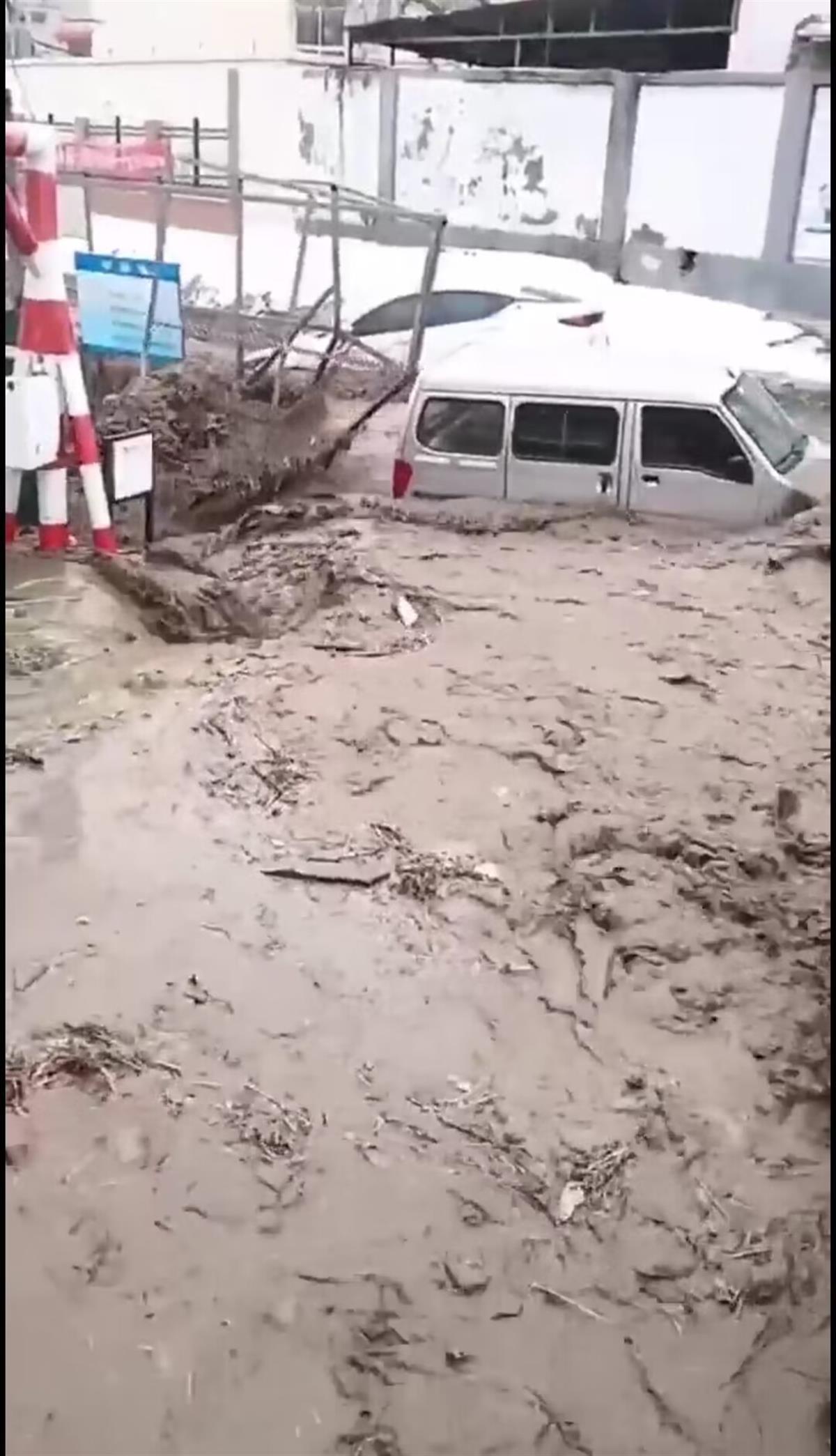 崔家崖社区居民崔先生介绍,17日中午12时许,突然来了一股“洪水”顺着居民区内的小公路滚滚而下,最深的地方有1米多深。水流将停放在路边的几辆车冲走,万幸的是几个被冲走的车内都没人。