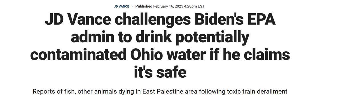 与此同时,俄亥俄州参议员万斯向美国环境保护局局长里根发起了一项“挑战”。据福克斯新闻网报道,万斯表示,如果里根认为东巴勒斯坦城的水可以安全饮用,那他就应该喝一口。
