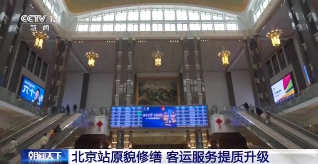 据了解,北京站本次遵循了“修旧如旧,尊重历史,还原本貌”的原则,对站内进行原貌修缮,使整座车站的风格、色调协调统一,将视觉色彩恢复至建站模样。同时,通过调整空间布局,维修破损墙体、更换候车椅面等,打造温馨通透的候车空间,提升旅客的出行体验。
