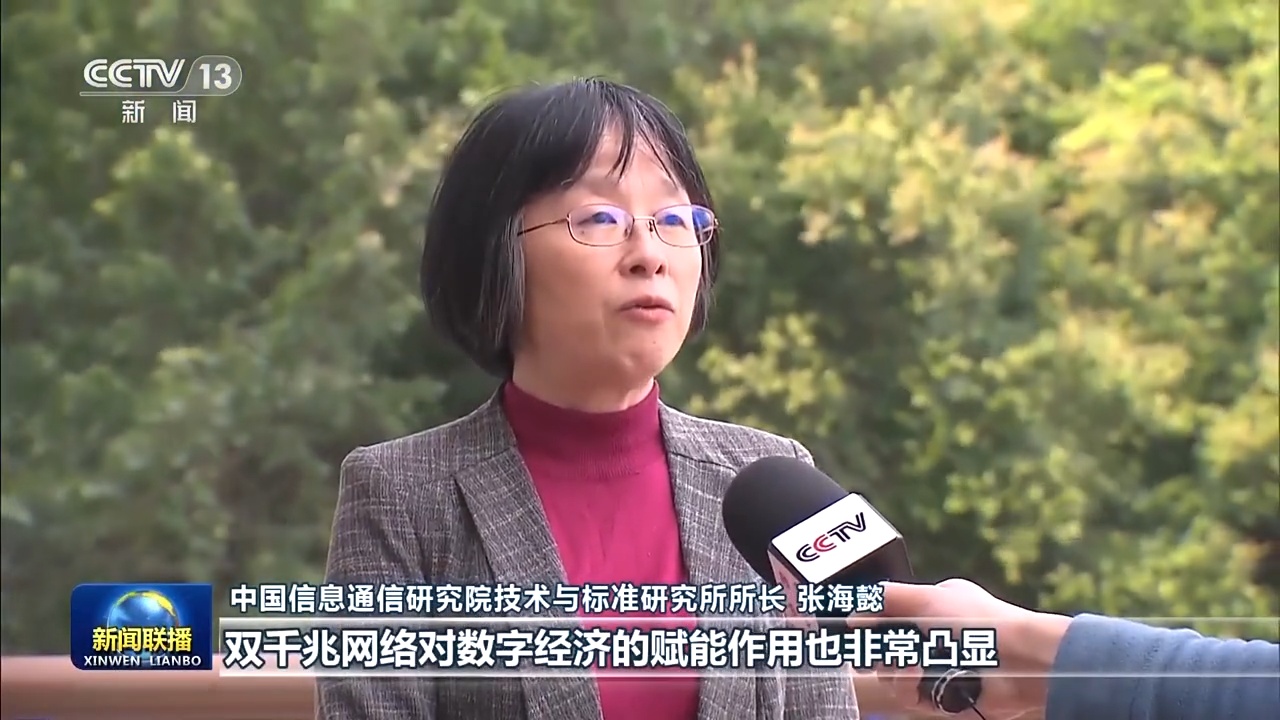 中国信息通信研究院技术与标准研究所所长 张海懿:双千兆网络对数字经济的赋能作用也非常凸显,形成了众多的应用场景,覆盖了国民经济97个大类中的40个。进一步的引领了整个数字产业化的升级,也为未来产业数字化的蓬勃发展奠定了基础。