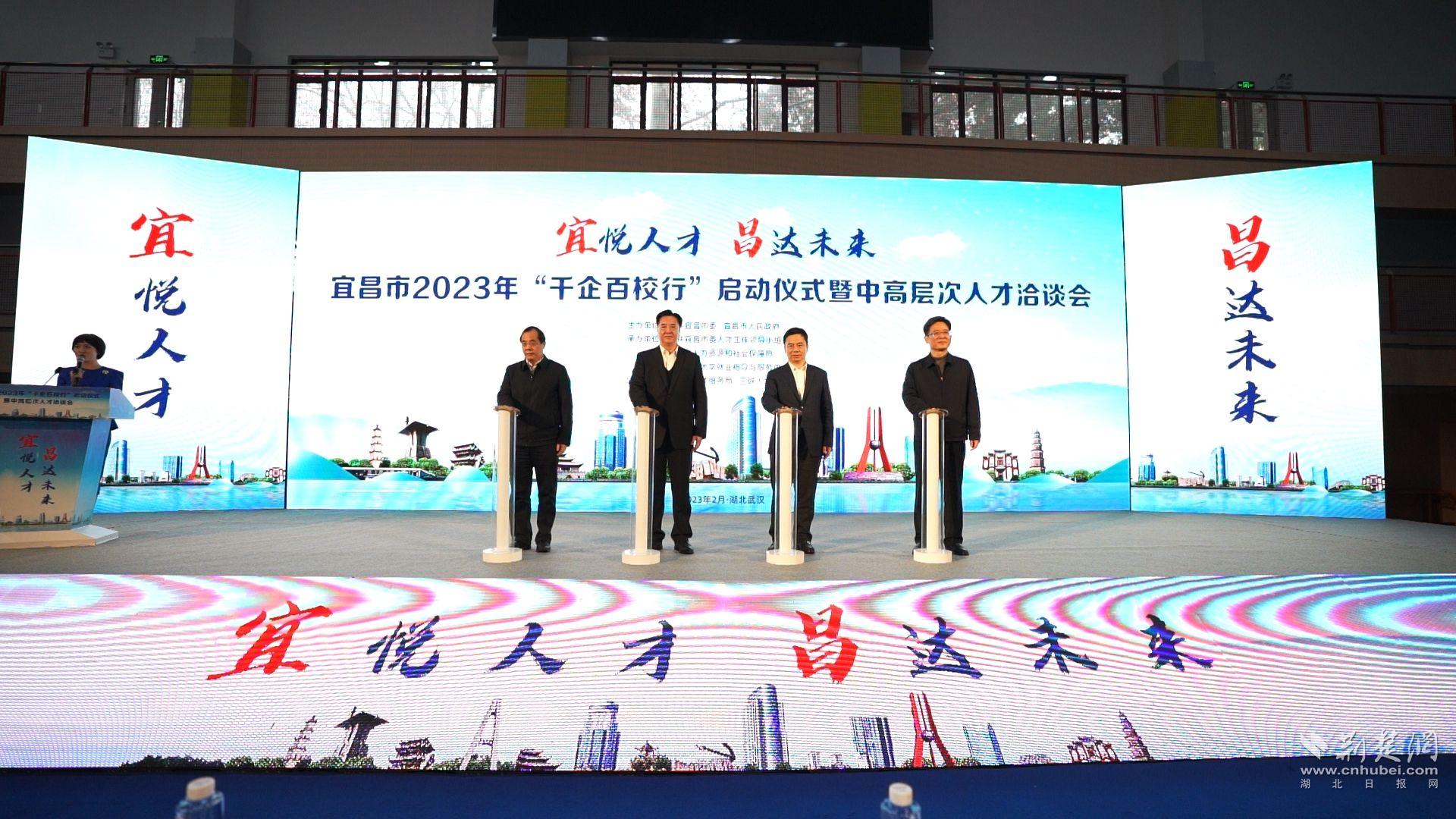 荆楚网(湖北日报网)讯(记者唐姝亚 实习生宋劲松、李姝羲 通讯员郑晓娟、陈曦)2月18日下午,宜昌市“千企百校行”启动仪式暨中高层次人才洽谈会在华中科技大学西区体育馆举行。本次由宜昌市人民政府主办,中共宜昌市委人才工作领导小组办公室、宜昌市人力资源和社会保障局承办、宜昌市人才服务局、三峡人才集团协办。宜昌市主要领导及相关领导、华中科技大学校领导共同启动宜昌市2023年“千企百校行”高校巡回招聘活动。宜昌市委常委、市委组织部长汪伟作了城市及人才政策推介。