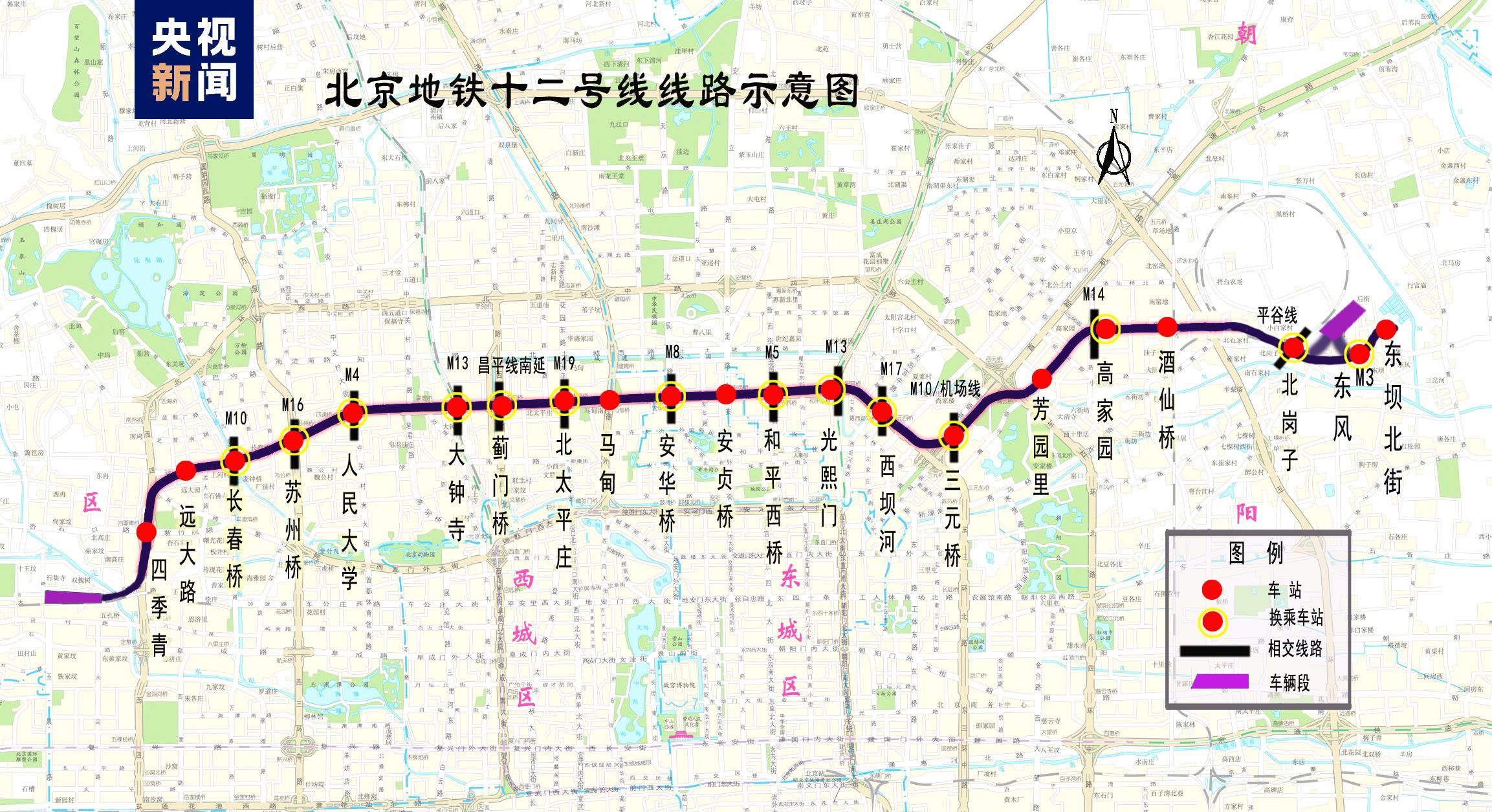 据了解,地铁12号线是一条主要沿北京的北三环东西向敷设的轨道交通干线,又称为“地下北三环”线。西起西四环四季青桥南,东至东坝北街,途经北京的海淀、西城、东城、朝阳四个行政区,连接多个重要功能区、商业区及居住区。线路全长29.6千米,全部为地下线,共设21座车站,先期建设20座。建成后的地铁12号线将与北京地铁4号线、5号线、8号线等12条线路的15座车站实现换乘。