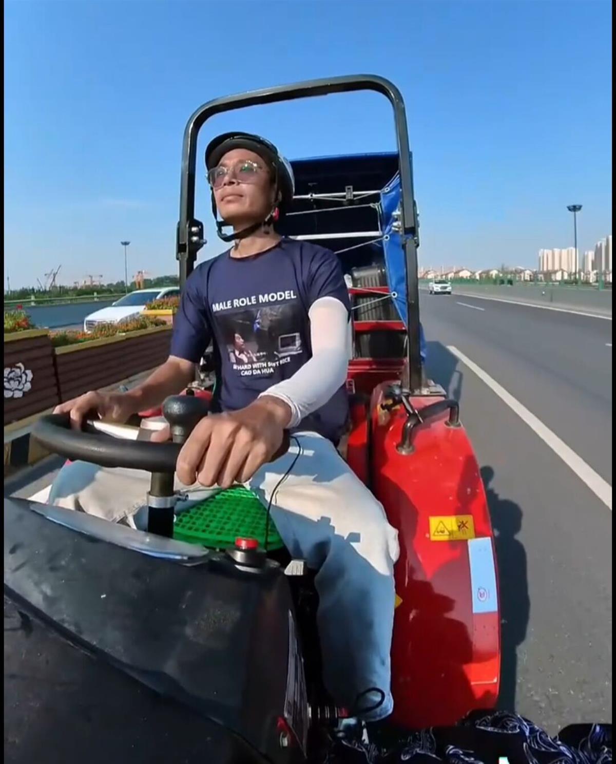 管管曾开着拖拉机自驾去西藏(视频截图)