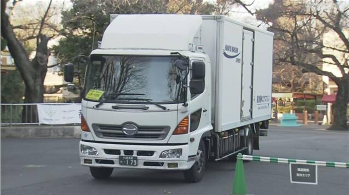 卡车载着“香香”缓缓驶离日本上野动物园(图片来源:NHK)
